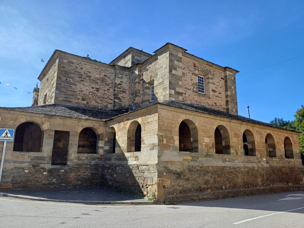 Jesteśmy w Grandas de Salime – niewielkim, ale urokliwym asturyjskim miasteczku zamieszkałym przez niecałe 1000 osób. To jedno z wielu niewielkich miasteczek na Camino Primitivo, niewielkie, ale z kilkusetletnią historią i charakterystyczną kamienną zabudową. Nie ma tu wiele do zwiedzania, ale po całym dniu na szlaku jest to bardzo przyjemna miejscówka. Są sklepy, lokalne restaurację, pewnie nie zasługujące na żadną gwiazdkę Michelin, ale za to z dobrym jedzeniem i lokalnym klimatem. Siadamy w ogródku jednej z nich. Ja w słońcu, mój towarzysz w cieniu. Zamawiamy napoje. Biorę wino stołowe, które tutaj serwuje się „po domowemu” – w szklance. Nikt nie przejmuje się kieliszkami, czy też elegancką zastawą. Sąsiednie stoliki powoli zajmowane są przez coraz większą liczbę osób, kosztujących przysmaków lokalnej kuchni. Nieziemski zapach i wypite wino pobudza apetyt, więc i my decydujemy się coś zamówić. Kelner poleca dwa lokalne dania – krokiety znane nam z innych części Hiszpanii i ośmiornicę po galicyjsku. Wprawdzie jeszcze jesteśmy w Asturii, ale jutro wkraczamy do Galicji, prowincji w której na stołach króluje ośmiornica. Nie chcemy więc czekać do jutra i już dziś decydujemy się na degustację. Za chwilę staje przed nami parujące danie w wersji „dla dwóch” (podawanie dań do podziału pomiędzy kilka osób jest tutaj często stosowaną praktyką) w towarzystwie drugiej porcji wina. Mam wrażenie, że kelnera okazał gest i w mojej szklance pojawiło się więcej wina niż wcześniej. Kiedy idę płacić przy barze rozkojarzenie kelnera pozwala przypuszczać, że sam również gasił pragnienie czerwonym napojem. Najedzeni ruszamy na spacer po miasteczku, kamienne uliczki, kamienne budynki, kamienny kościół zbudowany w XII w. i znacznie rozbudowany w późniejszych stuleciach ( XVII, XVIII i XIX).