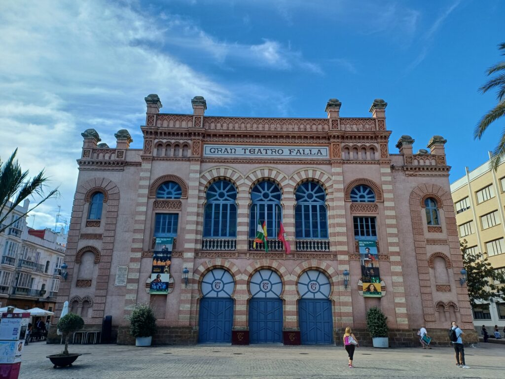 Można udać się również do teatru, albo chociaż pod teatr. Gran Teatro Falla, znajdujący się na Plaza Fragela, to XIX wieczny teatr zbudowany na fundamentach  wcześniejszego Wielkiego Teatru w Kadyksie, strawionego przez pożar. Teatr zbudowany jest z czerwonej cegły w stylu neomuderajskim (czyli nawiązuje architektonicznie do arabskich wpływów).