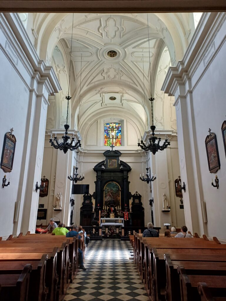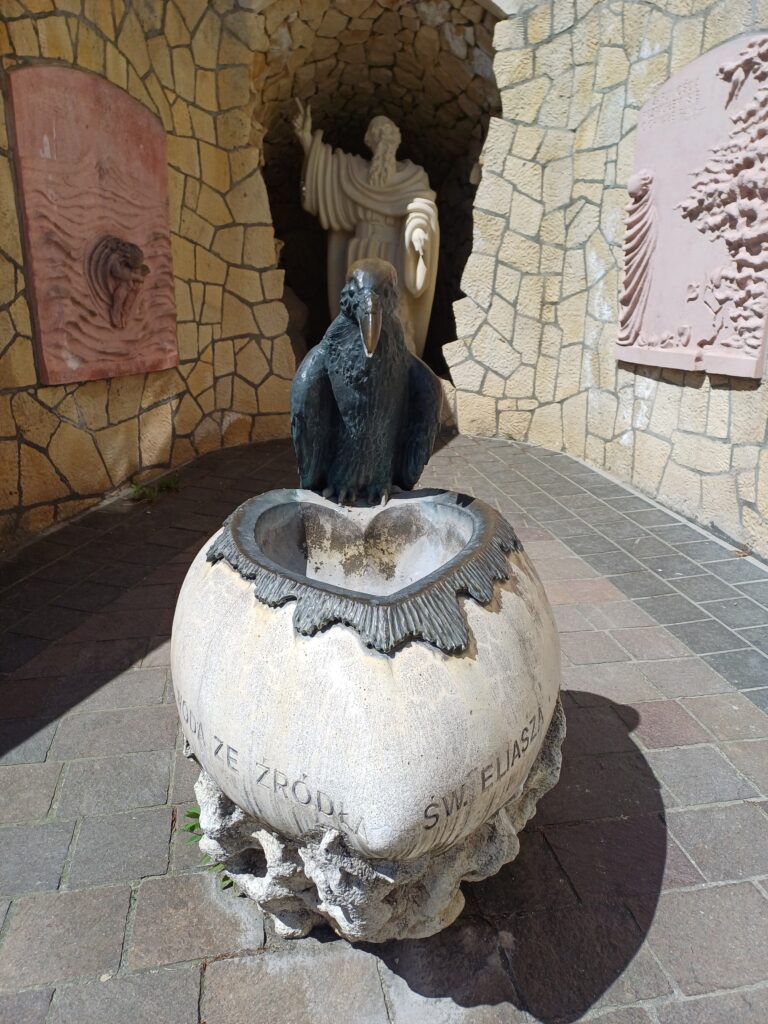 Zostawiam samochód na parkingu i promieniach słońca na tle błękitnego nieba udaję się do bram klasztoru. Nawet jeśli nie kierują nami względy religijne warto tu wstąpić na chwilę, bo to XVII wieczny zabytek i kawał historii. Klasztor i kościół pod wezwaniem św. Eliasza został ufundowany przez wojewodzinę krakowską Agnieszkę z Tęczyńskich herbu Topór Firlejową. Wybudowany został w latach 1629-1640. To barokowy kompleks oparty na planie czworoboku i architektonicznie nawiązujący do hiszpańskiego Eskurialu (chociaż zdecydowanie mniejszy). Zabudowania klasztorne obejmują część zamieszkaną przez zakonników oraz wczesnobarokowy niewielki kościół (70x70m), zdobiony czarnym marmurem, w którym znajdują się trzy barokowe ołtarze: ołtarz główny z wizerunkiem Eliasza autorstwa nadwornego malarza króla Zygmunta III Wazy Tomasza Dolabelli, ołtarz boczny z wizerunkiem Matki Boskiej Szkaplerznej, będący kopią obrazu Matki Boskiej Śnieżnej znajdującego się w rzymskiej bazylice Santa Maria Maggiore oraz ołtarz św. Teresy z Avila. Przed budynkiem zobaczymy również pomnik Eliasza oraz malutką fontannę z krukiem. Nie gołąb, nie orzeł, a kruk. Chociaż kruk budzi czasem negatywne skojarzenia, jest bardzo pozytywnym bohaterem historii Eliasza. Kiedy prorok ukrywał się przed czyhającym na jego życie królem Achabem, kruki przynosiły mu pożywienie – rano chleb, a wieczorem mięso.