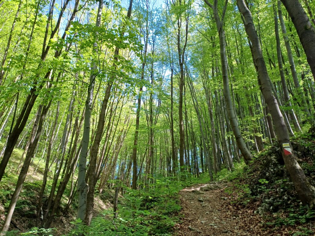 Źródło Eliasza kończy przygodę z asfaltem. Od tej chwili można w pełni korzystać z walorów przyrodniczych porośniętego lasem rezerwatu, który tworzy dolina z wąskim dnem, którym płynie potok Eliaszówka i stromymi zboczami. Jest i pod górkę i z górki, ale przed wszystkim jest zielono i pięknie, a szum drzew i świergot ptaków tworzą niesamowitą melodię. Wędrując lasem spotkamy buki, dęby i sosny oraz 200 gatunków roślin, w tym 24 będące pod ochroną. Trudniej będzie spotkać wyjątkowych mieszkańców, tj. trzy gatunki nietoperzy: podkowca małego, nocka dużego i nocka orzęsionego, za to co jakiś czas natknąć można się na pozostałości klasztornego muru. Uwaga, miejscami bywa stromo, w związku z tym trasa zdecydowanie nie nadaje się na spacer z wózkiem i warto mieć przy sobie kije trekkingowe oraz obuwie z dobrą podeszwą.
