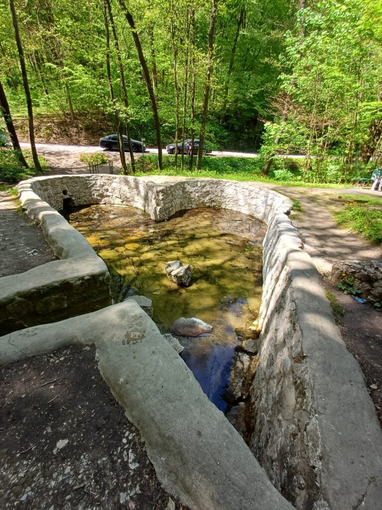 Docieram do pierwszego przystanku na trasie – źródła św. Eliasza. Do czasów wydrążenia klasztornej studni, źródło dostarczało wody braciom, a dziś pełni trochę inną rolę. Zgodnie z legendą, każdy kto napije się wody ze źródła, będzie mieć szczęście w miłości. Jednak tutaj pojawia się problem. Na znajdującej się obok sadzawki tablicy widnieje informacja, że woda jest niezdatna do picia przez ludzi. W ten sposób spragnieni szczęścia w miłości po raz kolejny stają przed jakże życiowym dylematem: serce czy rozum. Serce z największą chęcią podjęłoby ryzyko, ale rozum mówi, że zdecydowanie nie warto. I kogo tu posłuchać? Do legendy nawiązuje kamienne ocembrowanie źródła w kształcie serca. Powyżej źródła dostrzeżemy kapliczkę św. Eliasza z 1848 r.