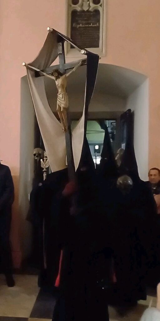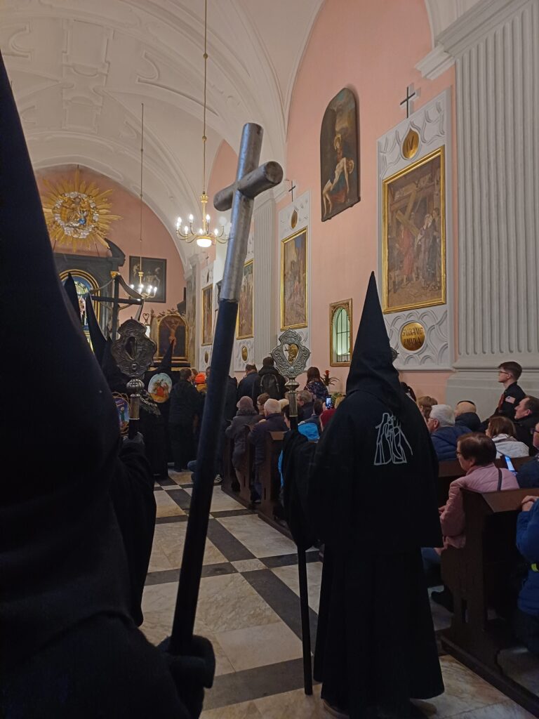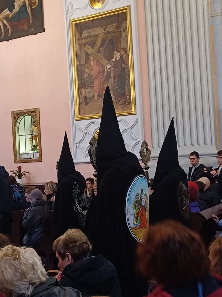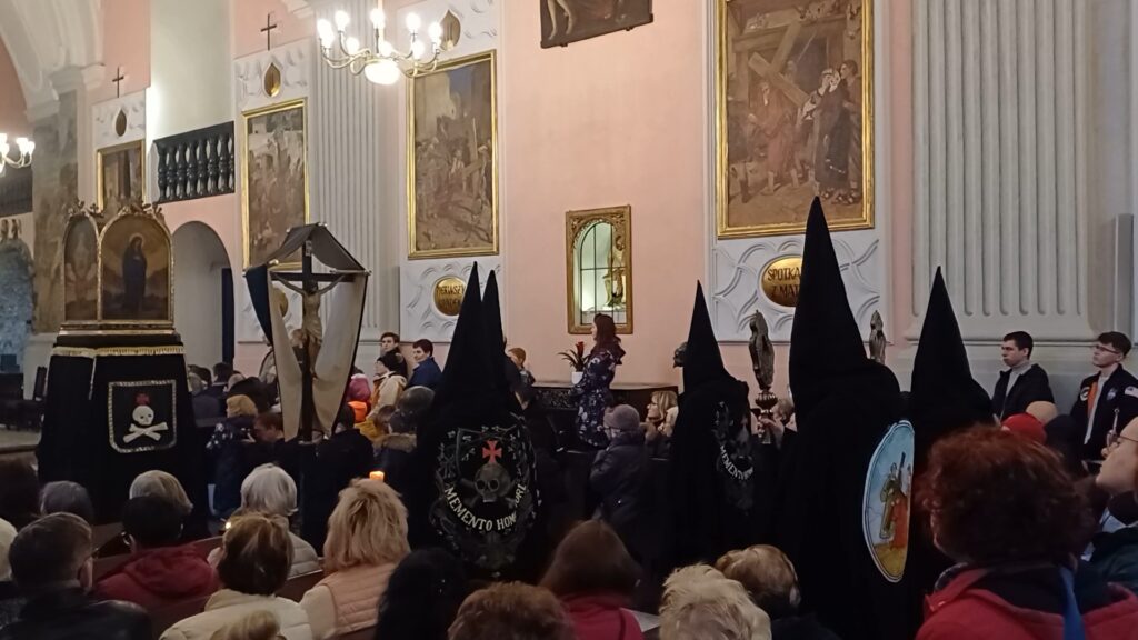 W każdy piątek Wielkiego Postu (oprócz Wielkiego Piątku), a także w pierwsze piątki miesiąca, zgromadzeni w kościele O.O. Franciszkanów w Krakowie mogą stać się świadkami bądź (według uznania) uczestnikami niezwykłego wydarzenia. Nieświadome tego faktu osoby przebywające w tym czasie w kościele mogą przeżyć mały lub większy szok. Tak było ze mną. Kiedy parę lat temu przebywałam w bazylice, zaskoczyło mnie brutalnie rozdzierające ciszę stukanie oraz przejmujący śpiew, a jeszcze bardziej widok procesji zakapturzonych osób niosących ludzkie (bez cienia wątpliwości) czaszki. Niby człowiek wiedział, że coś takiego w Krakowie jest, ale zobaczenie tego z zaskoczenia, na własne oczy, jednak wprawia w osłupienie. No bo jak to, w XXI w., w centrum dużego miasta, nagle zjawia się grupa ludzi ubranych trochę jak na bal maskowy, albo na zlot czarodziejów i innych postaci magicznych, jednak budzących nie radość, a raczej grozę.