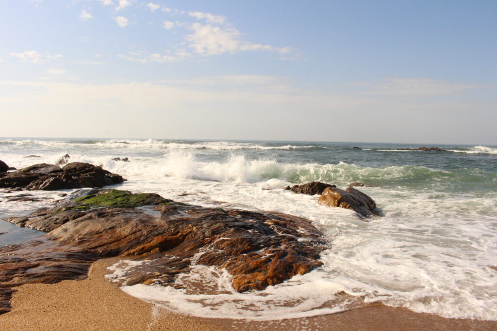 To miasto jest urocze. Mimo że bardzo często można spotkać opuszczone, zniszczone domy i kamienice, widać w nim ślad dawnej świetności. To miejsce w którym majestat spotyka się z biedą – wspaniałe kościoły i pałce z wąskimi uliczkami, przy których stoją ubogie domy rybaków. Zachwyciła mnie piękna architektura i wszechobecne niebieskie kafelki (azulejos). Urzekło mnie również to, że pomimo słońca i palm, kraj ten łączy temperament południowców z dystansem ludzi z północy. Gorącą krew chłodzi zimny wiatr znad oceanu, ale ludzie są bardzo gościnni, pomocni i mili. Ocean jest cudowny. Atlantyk jest zimny nawet w lecie, fale są mocne, więc czasem trudno pływać, ale listopadowe zanurzenie się w Atlantyku jest cudownym doświadczeniem, a zimne piwo w słoneczny dzień serwowane w rytm fal oceanu – bezcenne… Kiedy patrzę w bezkres błękitnych fal dopada mnie nostalgia fado. Czuję tęsknotę żon marynarzy wpatrujących się w horyzont i wypatrujących znajomych kształtów łodzi. Jednak nostalgia ta nie wypełnia mnie smutkiem, a daje mi coś, czego brakuje mi w codziennym, zagonionym życiu, dzielny pomiędzy pracą a obowiązkami, czyli spokój. Więc z radością wpatruję się w horyzont. A wiecie, co lubię najbardziej (nie tylko w Portugali)? Lubię zabytkowe miejsca, lubię podziwiać starą architekturę i myśleć o ludziach, którzy po tych kamieniach chodzili setki lat przed nami, ale największą radość sprawia mi, kiedy dostrzegam, że w tych zabytkowych miejscach ciągle tętni zwykłe, codzienne życie.
