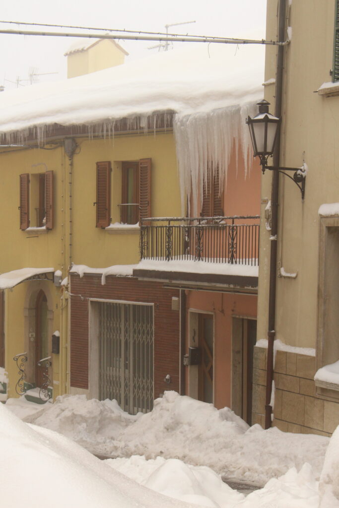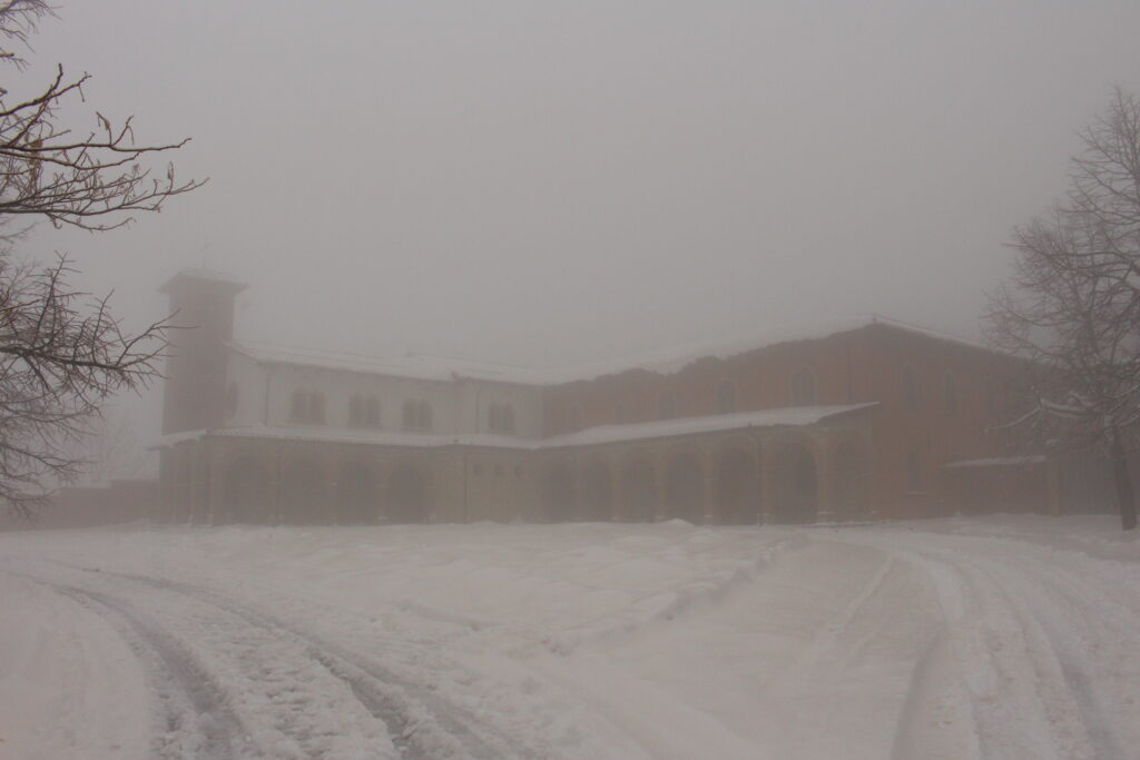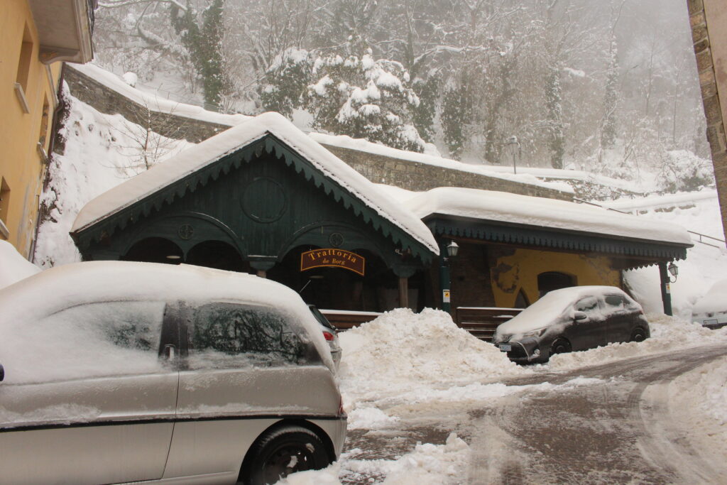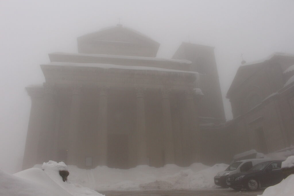 Nie dowierzając własnym oczom patrzyłam i patrzyłam, ale mimo intensywnego wytężania wzroku, nie dostrzegałam żadnej drogi, ani nawet wydeptanej dróżki prowadzącej do drzwi i świadczącej o tym, że ktoś tam kiedyś dotarł. Zastanawiając się, czy tam w ogóle jest życie i czy nie czeka mnie nocleg w śnieżnej zaspie, ściskając w ręku walizkę (niestety na kółkach nie na płozach), zanurzyłam nogę w śniegu i zapadłam się w nim prawie po kolano. Otuchy dodawał mi jedynie fakt, że nie byłam sama, a wiadomo, w kupie raźniej… Udało nam się przedrzeć przez śnieżne pole i dotrzeć do drzwi. Pan na recepcji (tak, był tam człowiek!) powitał nas serdecznie, po czym poinformował o awarii ogrzewania i braku ciepłej wody. Na szczęście mieliśmy dach nad głową. Następnego dnia z powodu marznącego deszczu została zamknięta autostrada łącząca San Marino z Bolonią. Tak rozpoczęły się króciutkie wakacje w krainie Królowej Śniegu, to jest, przepraszam bardzo, w San Marino.