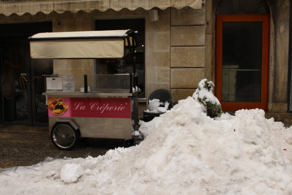 Tym razem tak naprawdę trudno mi pisać o zwiedzaniu i o zabytkach, bo moja uwaga skoncentrowała się głównie na śniegu oraz na gorącej pysznej owocowej herbacie z miodem wypitej do obiadu. Gwoli wyjaśnienia – sam śnieg nie jest zjawiskiem, które mnie zaskakuje 😉 Jednak śnieg na południowych ulicach i to w takiej ilości oraz fakt, jak radzą sobie, a raczej nie radzą sobie z nim miejscowi, był zjawiskiem, które całkowicie pochłonęło moją uwagę.