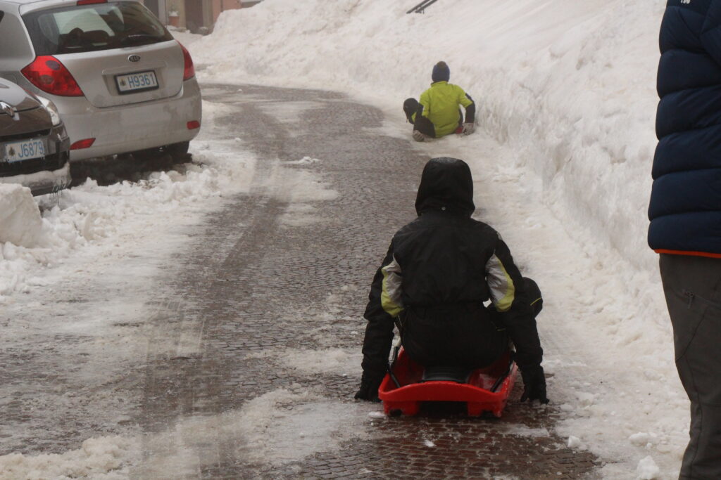 Koła autobusu powoli pięły się pod górę, z trudem łapiąc przyczepność na wprawdzie odśnieżonej, ale mimo to śliskiej drodze. Krajobrazy rozciągające się za oknem nie pozostawiały złudzeń, a raczej pozbawiały wszelkiej nadziei. Biel spowijała wszystko. W końcu autobus zahamował i zatrzymał się na przystanku, a kierowca poinformował nas, że dotarliśmy do celu. Do celu??? Do jakiego celu??? Wsiadłam do autobusu udającego się do San Marino, a wysiadłam z niego na Przystanku Alaska. Planując wakacje na przełomie późnej zimy i wczesnej wiosny nie liczyłam na upały – w końcu nawet na Półwyspie Apenińskim bywa o tej porze roku zimno, ale widok, który ukazał się moim oczom zdecydowanie przekraczał granice mojej fantazji. Parafrazując słowa wieszcza – wpłynęłam na śnieżnego przestwór oceanu. Przede mną rozciągała się biała tafla śniegu nietkniętego ludzką stopą, a kilkadziesiąt metrów dalej, w śniegu, hostel, w którym miał czekać na mnie nocleg. Reniferów nigdzie nie dostrzegłam, ale za to na dachu stała dumnie krowa (z plastiku lub innego tworzywa).